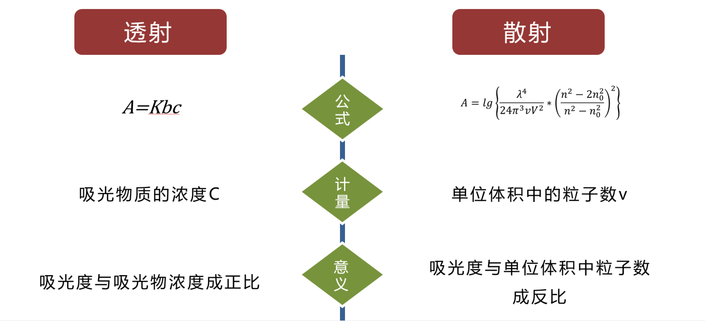 散射比浊:检测由抗原抗体结合产生成抗原抗体复合物颗粒,导致的光散射,散射光强度与单位时间内抗原抗体复合物的生成速率成正比。