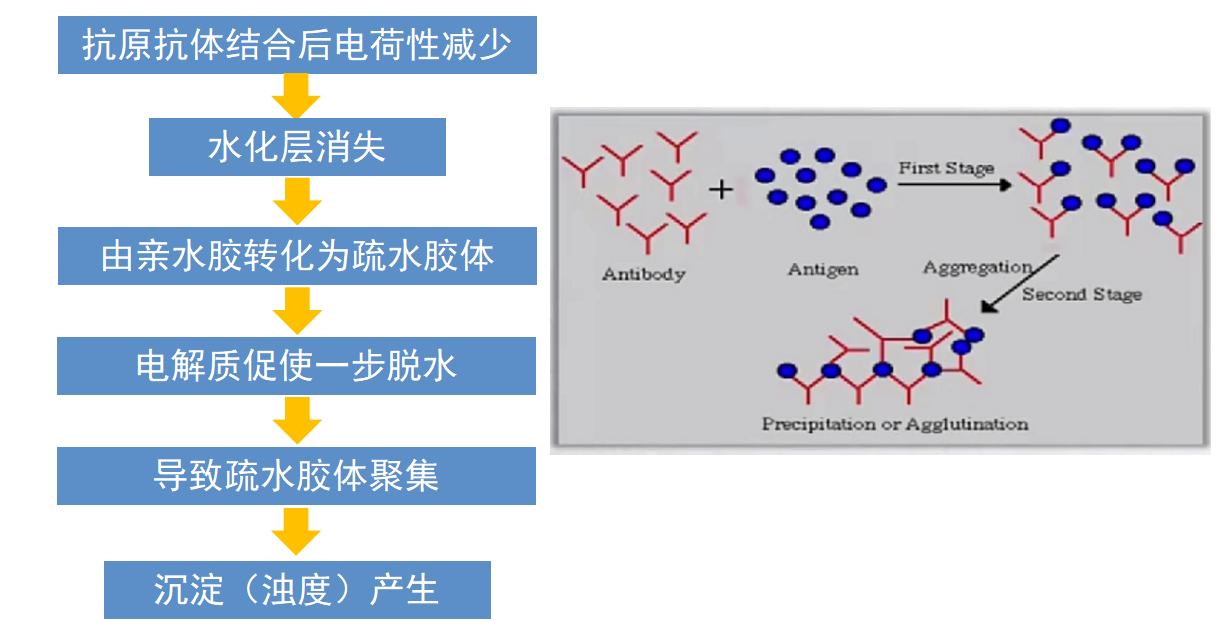 1、光学的理论发展:免疫比浊法是基于比色法的基础发展,由双价的抗体和单价的抗原间反应产生了免疫沉淀。