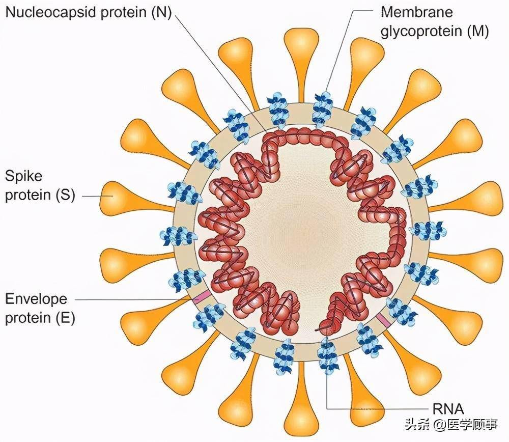 冠状病毒形态结构示意图(图源:医学顾事)